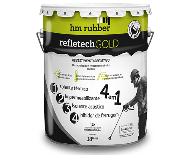 O HM Refletech Gold é um produto inovador da HM Rubber formulado para oferecer proteção completa contra uma série de problemas em superfícies que enfrentam condições climáticas adversas, como calor, umidade e ruídos. Este revestimento refletivo de borracha líquida é uma solução avançada que incorpora nanotecnologia para proporcionar vários benefícios em aplicações diversas.